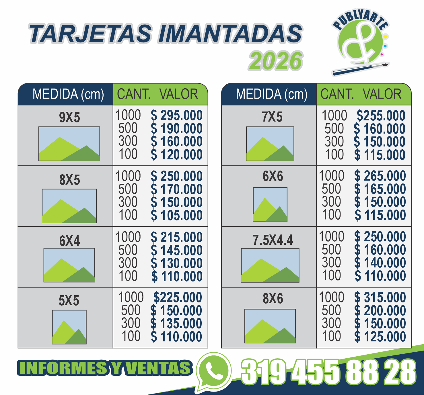 PRECIOS TARJETAS IMANTADAS PUBLYARTE – 2026