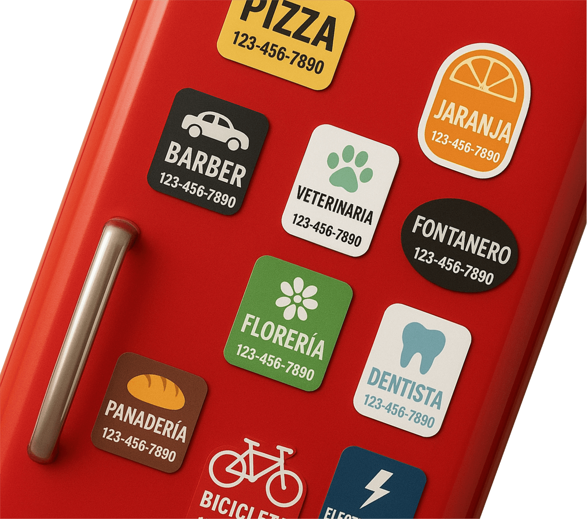 Lleva tu marca siempre visible con nuestras tarjetas imantadas impresas en policromía de alta calidad y con acabado brillante UV para mayor durabilidad. Perfectas para colocar en la nevera, archivadores u otras superficies metálicas.